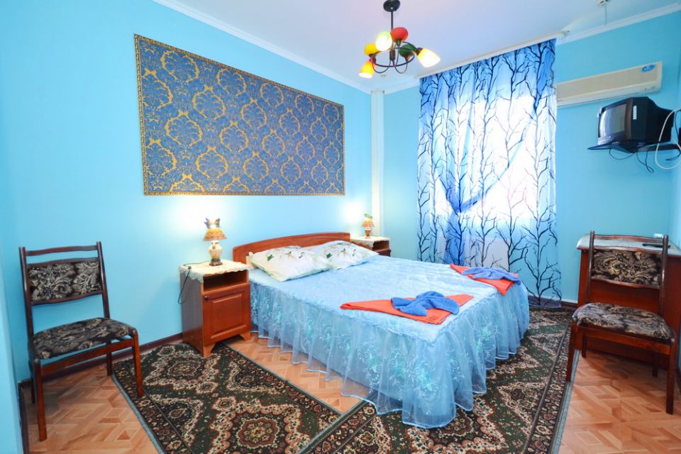 2-местный номер стандарт, в номере двуспальная кровать, кондиционер, шкаф, журнальный столик. Удобства: телевизор, холодильник, сплит-система, душ в номере. Примечания: Балкон общий с видом на море.